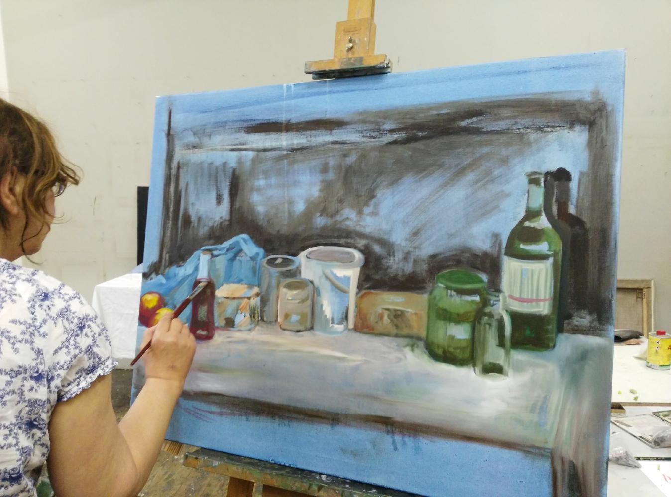 In diesem Workshop beschäftigen wir uns mit der Arbeitsweise von Paul Cèzanne, einem wichtigen Wegbereiter der Modernen Malerei. Durch die Reduktion der Formen und der gleichzeitigen Betonung auf die Farbe und das Volumen beschäftigen wir uns mit dem Gesehenen und lassen Bilder von malerischer Farbigkeit entstehen. Die Motivwahl kann ganz nach individuellem Geschmack zwischen Landschaft, Stillleben, oder Personen / Portrait gewählt werden. Dabei nähern wir uns dem Gesehenen über lockere Vorzeichnungen an. Dann arbeiten wir weiter mit einer skizzenhaften Hell/Dunkel Untermalung, dann geht es mit Ölfarbe weiter.